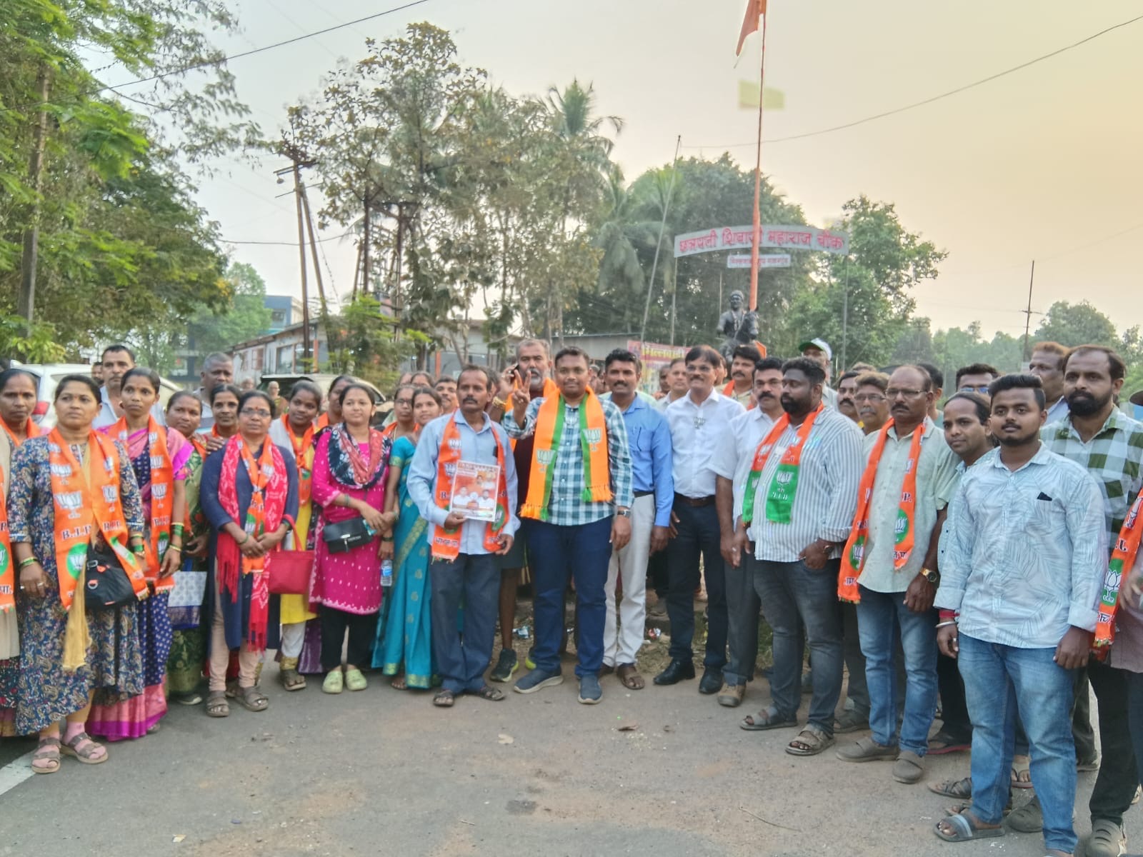 सावंतवाडी : भारतीय जनता पक्ष हा सर्वसामान्य जनतेचा पक्ष आहे. सर्वसामान्य जनता हाच पक्षाचा केंद्रबिंदू आहे.येणारी जिल्हा परिषद आणि पंचायत समिती निवडणूक ही जनतेची असणार आहे. जनता पाठीशी त्यामुळे विजय गाठीशी नक्कीच आहे असे प्रचारादरम्यान तळवडे जिल्हा परिषद मतदार संघांचे महायुतीचे उमेदवार संदीप गावडे यांनी मत व्यक्त केले. जनता पाठीशी असताना आपल्याला कोणत्याही प्रकारची भीती नाही. जनता आपल्या मताने सर्व प्रश्नांना उत्तर देईल. मी अजून काही बोलणार नाही असे मत यावेळी संदिप गावडे यांनी व्यक्त केले. यावेळी मळगाव पंचायत समिती सदस्य पदाचे उमेदवार गौरेश मुळीक, सावंतवाडी नगरपरिषदेचे विद्यमान नगरसेवक ऍड. अनिल निरवडेकर, विनोद राऊळ, माजी सरपंच गणेशप्रसाद पेडणेकर, सिद्धेश तेंडोलकर, निलेश कुडव, निलेश राऊळ, निकिता राऊळ, लक्ष्मण गावकर, संदेश सोनुर्लेकर, महेश गवंडे इ. पदाधिकारी आणि कार्यकर्ते मोठ्या संख्येने उपस्थित होते.